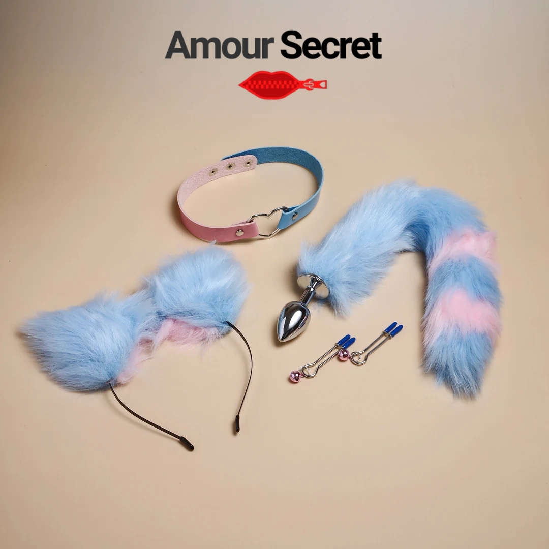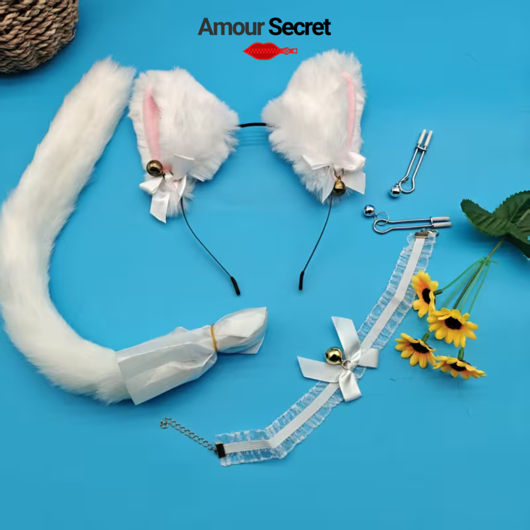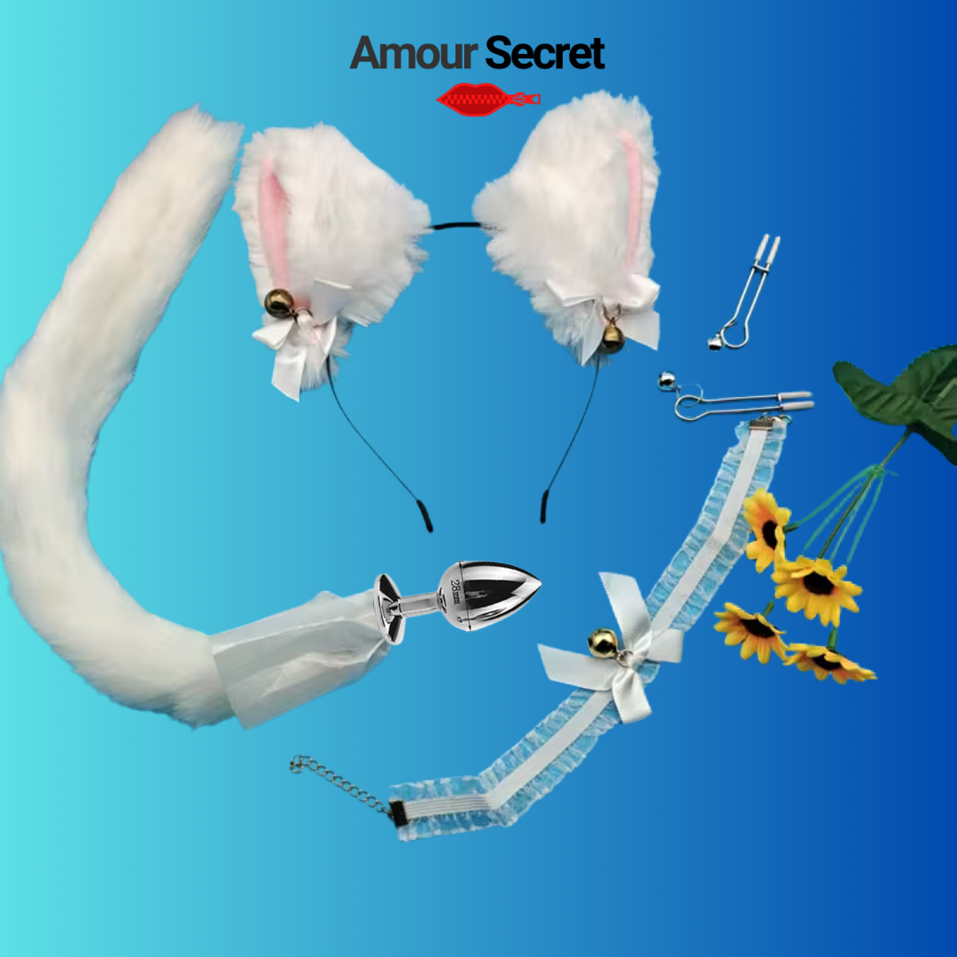 Ajoutez une touche de charme, de jeu et d’originalité à vos moments privés avec le Kit Fantaisie Amour Secret. Composé d’oreilles en fourrure douce, d’un collier raffiné avec clochette et d’une queue élégante avec base métallique, cet ensemble est conçu pour sublimer vos instants avec style et confort.