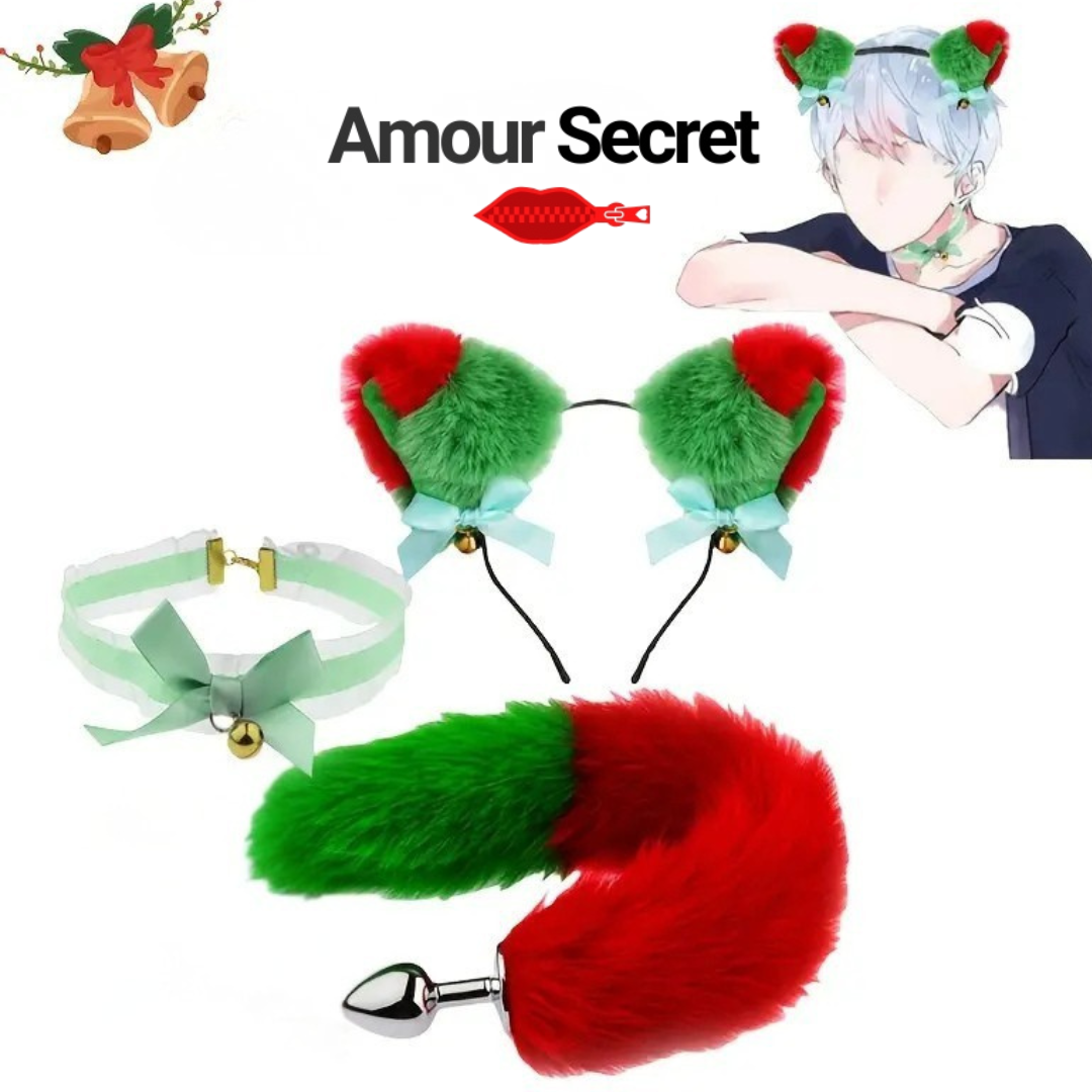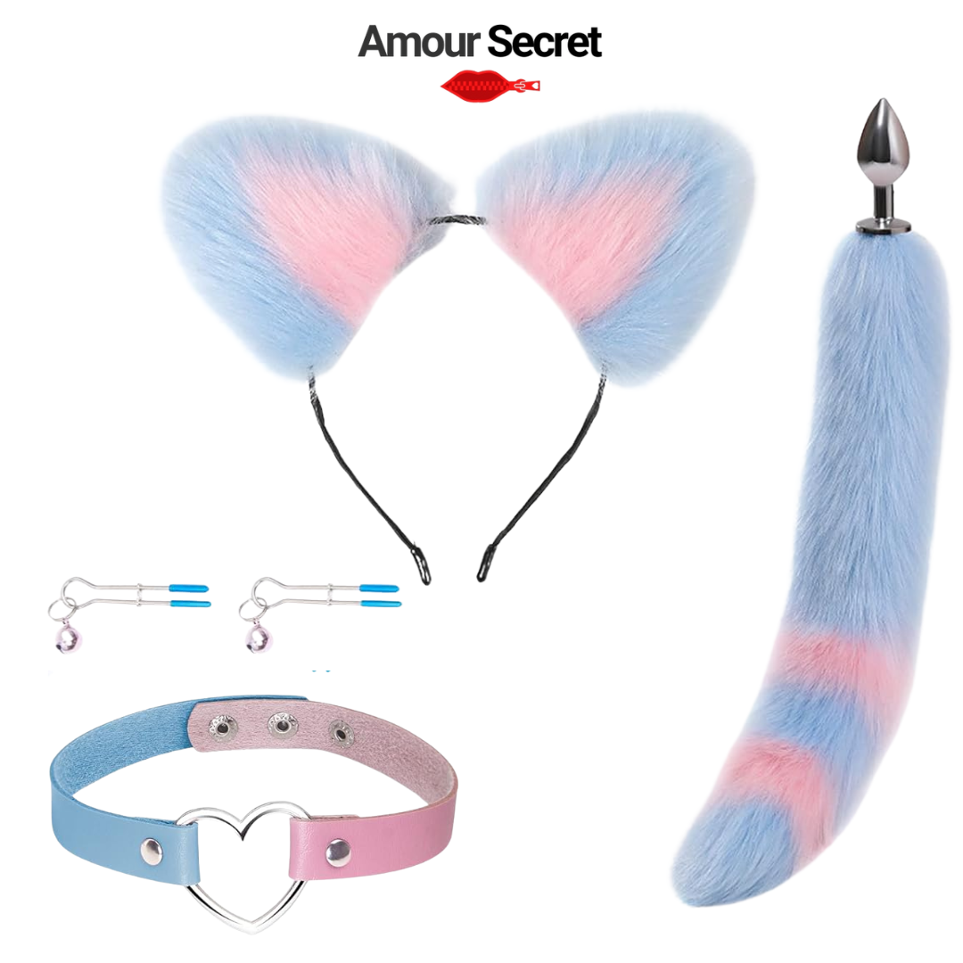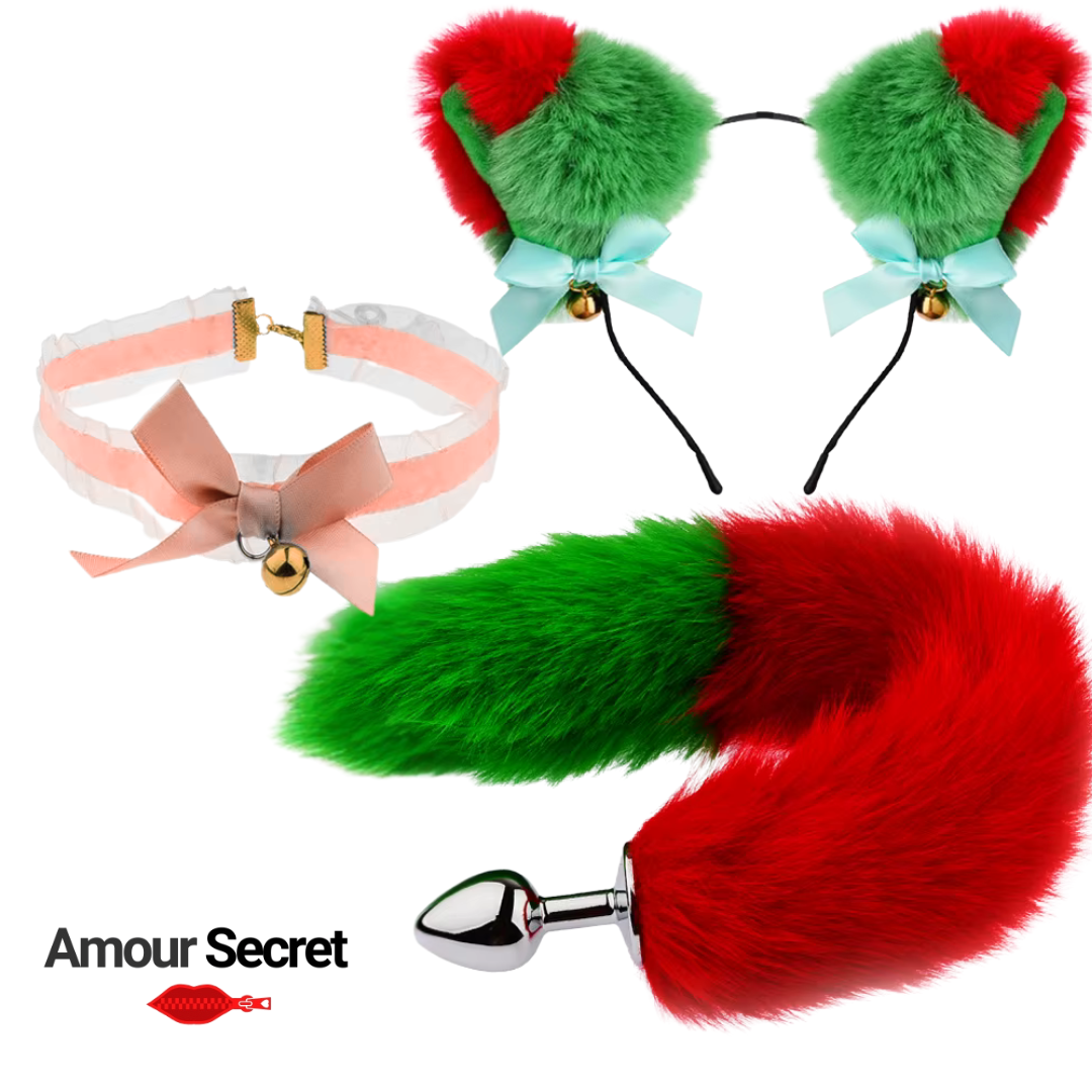 Ajoutez une touche de charme, de jeu et d’originalité à vos moments privés avec le Kit Fantaisie Amour Secret. Composé d’oreilles en fourrure douce, d’un collier raffiné avec clochette et d’une queue élégante avec base métallique, cet ensemble est conçu pour sublimer vos instants avec style et confort.